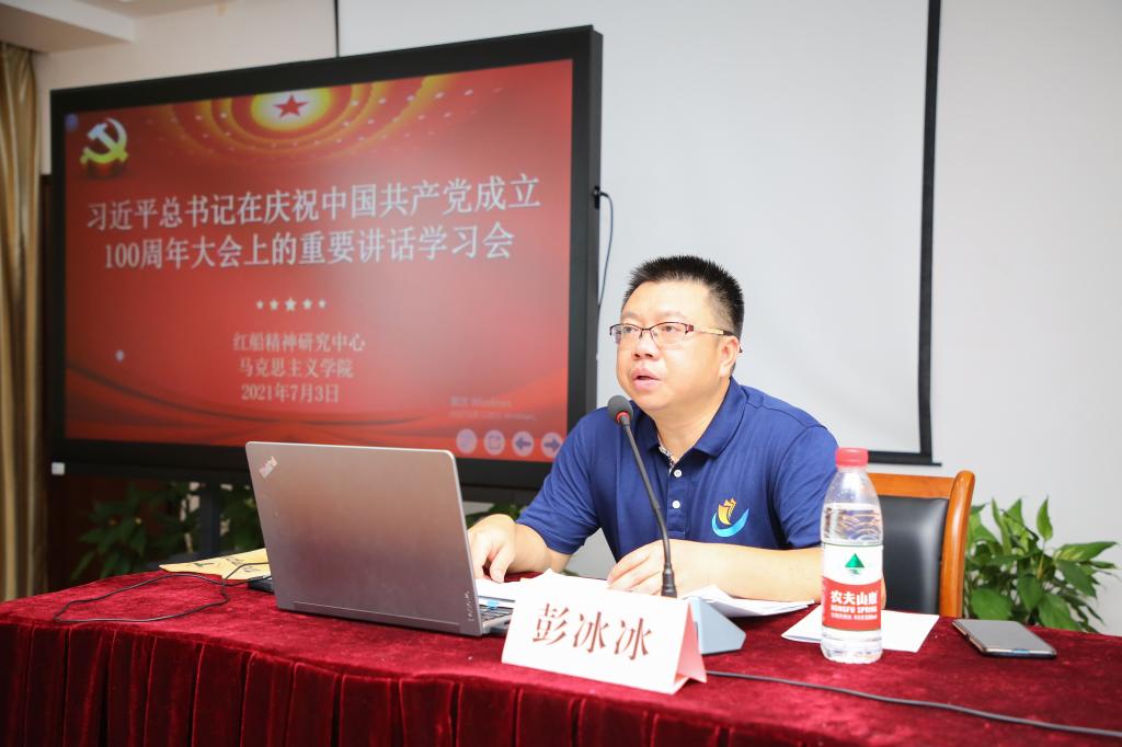、红船精神研究中心共同组织召开习近平总书记在庆祝中国共产党成立100周年大会上的重要讲话学习会,特邀人文社科处处长彭冰冰教授为大家作专题学习辅导,并谈了参加此次庆祝大会的亲身感受。中心主任吕延勤研究员出席了学习会,小黄书